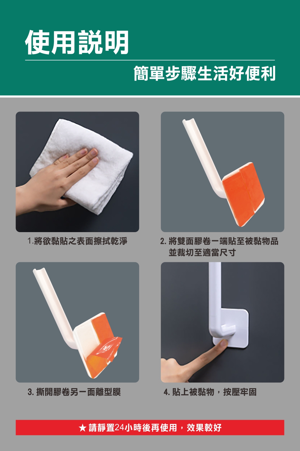 使用方式:欲黏貼之牆面或物品先行擦拭清潔,乾燥後將商品裁剪至所需長度貼於牆面或物品上,再將另一邊膠帶撕下即可。